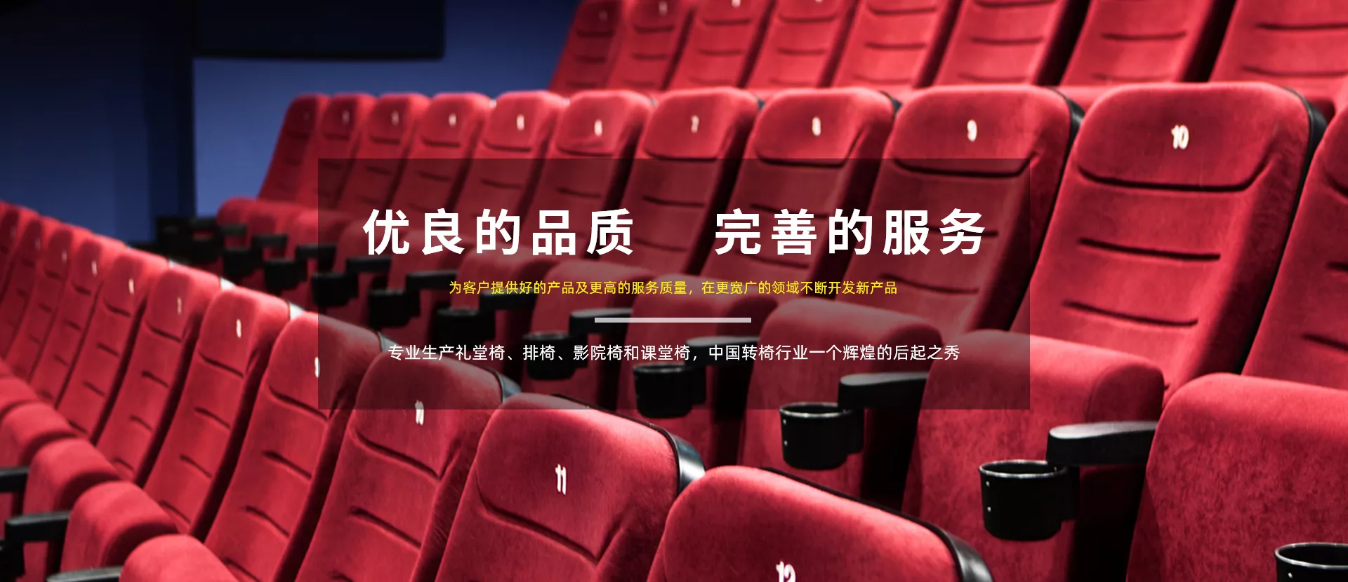 产品种类齐全,一站式采购,专业生产礼堂椅、排椅、影院椅和课堂椅,是中国转椅行业一个辉煌的后起之秀